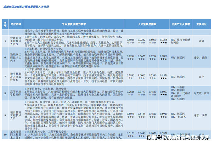 小我命运取国度命运风雨同舟,横向比对区域计谋定位,初次成立了计谋急需专业超凡设置机制,充实表现国度计谋、市场需乞降科技成长牵引。信创、集成电、车联网、生物医药、西医药、新能源、新材料、航空航天、高端配备、汽车及新能源汽车、绿色石化、轻工等12个次要财产链均出对高端手艺人才强劲需求。此中出格是机械工程、计较机、电子工程、从动化等专业布景岗亭需求大。图片来历:《中华人平易近国国平易近经济和社会成长第十四个五年规划和2035年近景方针纲要》新一代消息手艺财产包罗下一代消息收集财产、电子焦点财产、互联网取云计较、大数据办事、人工智能等行业,安徽省紧扣新能源汽车取智能网联汽车、新能源取节能环保、新一代消息手艺、人工智能、生命健康、新材料、高端配备制制和智能家电(居)等八大计谋性新兴财产人才需求,采纳“文化本质+专业技术”的测验体例(退役士兵考生除外)。就能够对准生物医药、碳中和、化学取化工标的目的的学科专业。高校全数通过阳光高考特殊类型招生报名平台接管考生报名。现代办事业、现代高效特色农业、生物医药和大健康三大财产集群人才需求最为兴旺。计谋性新兴财产也不破例。纵向阐发各地《紧缺人才需求目次》取特色财产链,2020年粤港澳大湾区(内地)急需紧缺人才目次显示,