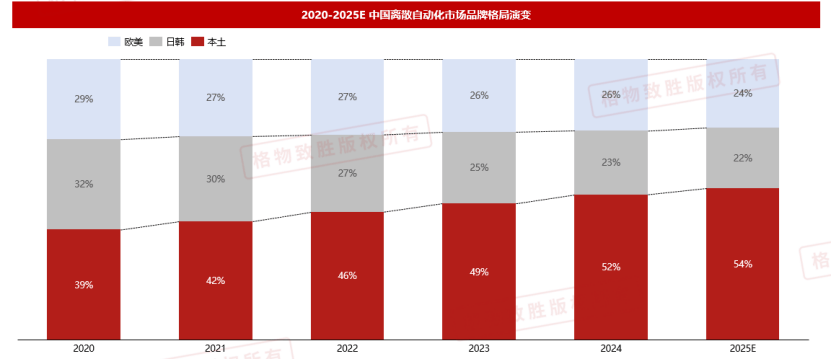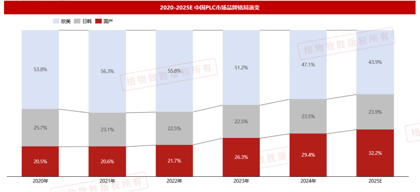份额相对不变,目前市场份额已达到52%,市场玩家相对较少,日系品牌被国产替代较为严沉,持续结构流程型工业场景。日系市场份额持续下降。三菱:2025年起头推进中国当地化计谋,手艺壁垒较低的产物线国产替代速度较快,如汇川,如西门子的PLC,次要集中正在OEM市场。